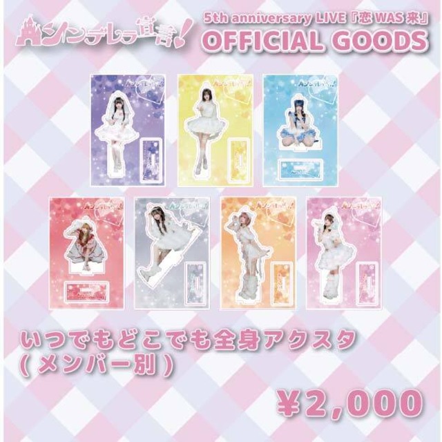 2025年12月20日(土)に行われた、 シンデレラ宣言! 5th anniversary LIVE 『恋WAS来』にて販売した、背景つきの全身アクリルスタンドです。 KUTSUSHIは在庫切れのため、1/31をもちまして終売となります。 売切時、次回入荷は予定しておりませんのでお早めに購入お願いします。