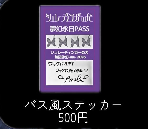 シュレーディンガーの犬 ならく卒業公演 『夢幻永日-die-』にて販売した、スタッフパス風ステッカーです。