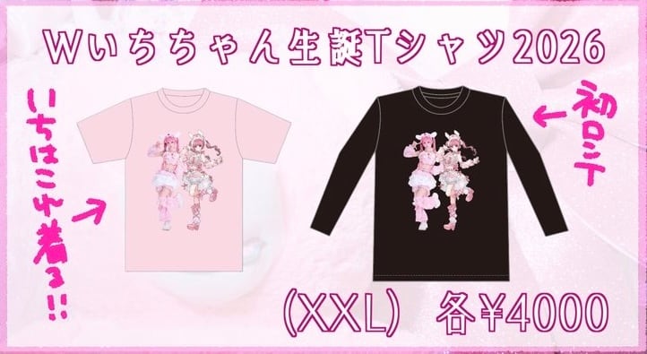 シュレーディンガーの犬 いち生誕祭 『きょうもいちがいっちばーん!!!!!』にて販売した、Wいちちゃん生誕Tシャツ2026(XXL)です。